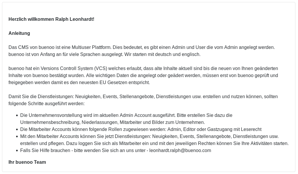 Das CMS von vm8co ist eine Multiuser Plattform. Dies bedeutet, es gibt einen Admin und User die vom Admin angelegt werden.